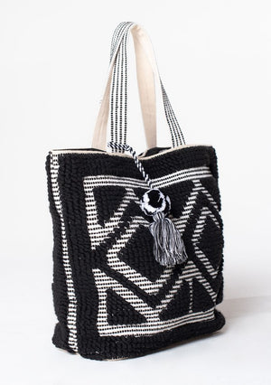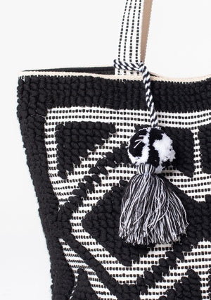The Bailey Boho Diamond Tote is the ideal tote for all of your everyday errands! We love the boho feel of the hand loom pattern and the neutral colors match almost any outfit! The pom pom tassel adds a bit of fancy flair to this casual but oh so chic tote!