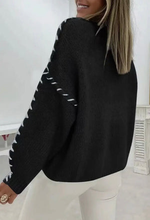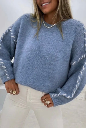 Introducing the Sofia Stitched Sweater - a must-have for any wardrobe. This crew neck, long sleeve knit sweater boasts cute stitching details on the sleeve for the ultimate on trend style. Timeless and versatile, it's perfect for any occasion. Stay warm and stylish with the Sofia Stitched Sweater.