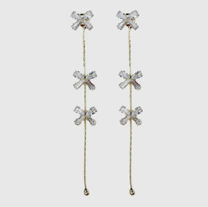Introducing our Bow Trilogy Drop Earrings - the perfect accessory to elevate any outfit. With their elegant and stylish design, these earrings will make you feel like the belle of the ball. Stay on trend and add a classic, fashionable touch to your look.