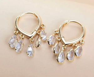 The Evelyn Teardrop Hoops are the perfect accessory for anyone who's looking to amp up their simple style wardrobe. Available in multiple colors, they add a bit of glitz and glam for your everyday style or a simple sparkle for your next special occasion.