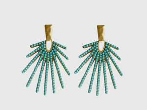 Introducing our Turquoise Starburst Earrings, a bold and beautiful addition to your fashion-forward jewelry collection. These earrings feature stunning turquoise in a gold setting, making a statement that is both on-trend and fun. Elevate any outfit with these statement earrings.