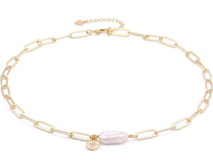 Elevate your style with our Meaghan Mother of Pearl Necklace. Crafted with a natural stone and a paperclip gold chain, this elegant and stylish piece will add a touch of sparkle to any outfit. A classic statement piece that is also on-trend, perfect for any occasion.