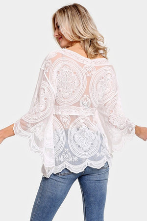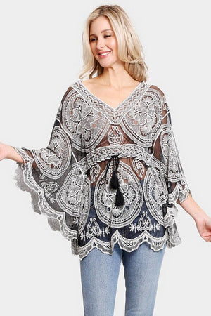 The Ophelia Floral Lace Cover up is one of our most popular styles! Available in multiple hues, it's simple elegance is easy to wear and hard to forget! We love it as a bathing suit cover up but also as a delicate day or evening addition to your everyday white jeans. The intricate lace details feature a floral motif and the drawstring cinched waist adds a flattering detail.