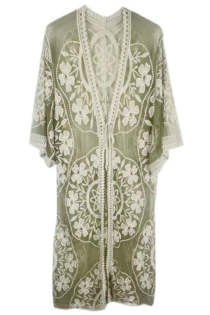 The Fawn Floral Lace Kimono is one of our best sellers! Because it's one size and easy to wear, it can be worn casually to the beach or dressed up for a more formal affair. We love the feminine details featured throughout and the bell shaped sleeves add a nice flair.
