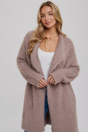 Experience ultimate comfort and style with our Soft Fuzzy Drape Front Cardigan. With dolman sleeves, side pockets, and an oversized fit, this cardigan is both functional and fashionable. Made from a fuzzy knit material, it provides a luxurious feel that will keep you warm and cozy. Elevate your wardrobe with this extra soft essential.
