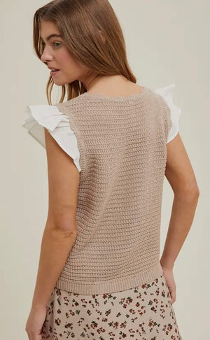 The Gianna Knit Top features stylish ruffle sleeves, seamlessly blending casual comfort with refined elegance. Perfect for everyday wear, it transitions effortlessly from office settings to weekend gatherings. Its lightweight knit fabric makes it ideal for layering during changing seasons, ensuring both comfort and a polished look for any occasion.