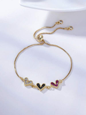 The Izzy cubic zirconia heart gold bracelet is a beautiful and romantic accessory that combines the elegance of gold with the sparkle of cubic zirconia stones. It represents love and affection, making it a meaningful piece of jewelry for special occasions or everyday wear.