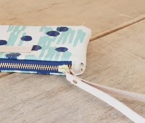 Crafted with care in Maine, the Navy Meadow Wristlet is a charming addition to the Navy Meadow Collection. Its unique design and quality details make it a standout piece, perfect for complementing other items in the collection. Handmade with expert craftsmanship, this wristlet exudes elegance and style.