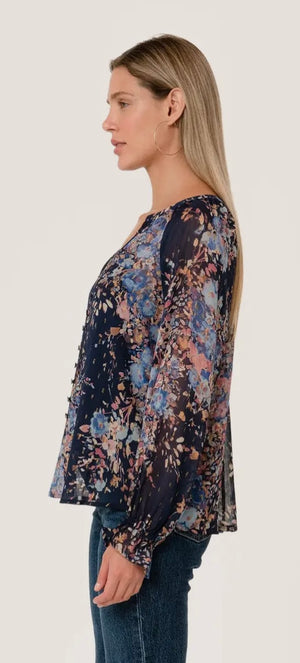 This lightweight transitional blouse features delicate, petal-inspired detailing in soft, bloom-inspired hues. Lined for added comfort and subtle structure, it effortlessly blends elegance with everyday wearability, making it an ideal choice for layering through the changing seasons.